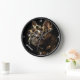 The size of the clock is dramatic and the abstract alcohol ink design is soothing and intricate at the same time. I chose the black frame that adds pop to the blue and gold design. The gold printing would be better in a slightly darker or larger font. I love it and I’m looking for just the right place in ny new apartment. I would recommend this clock for a personal gift or a present. I feel that the quality is excellent for the money! I’m a bit of a clock nut so I’m pretty particular about my purchases. The clock is larger in diameter than many if the clocks I have, so it stands out very well. I think a slightly darker printing color and a moderately larger size would best suit a professional decor or add more impact in a work place item.