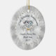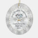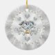 Stunning Inexpensive Personalized 25th Anniversary Ornament. Amazing 25th anniversary favors and cheap 25 year anniversary gifts for couple. Type in Couple's Names and Wedding or Anniversary Date or YOUR TEXT or Delete. What is the 25th anniversary symbol? It is Silver anniversary. Shades of custom printed silver anniversary colors, diamond and pearl design. This25th wedding anniversary Christmas ornament can be for any occasion. CALL Designer Linda: 239-949-9090 EST for CHANGES to the Design, Occasion, Year and Anniversary, or any occasion, COLORS.