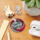 Express your appreciation to your pet sitter or dog walker with this inexpensive thank you keychain. The background features a large swirl of pale green and white color against a swirled bright red background. The words "thank you" appear in the center and can easily be customized to suit your needs. Two small, black paw prints accompany the abstract design.