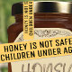Honey Infant Warning jar lid sticker with yellow background and sunflower white text. Any attempts to remove the jar lid will stretch or destroy the tamper-evident label, making it obvious that the lid has been tampered-with. Super-strong adhesive: just place on your honey jar lid and extend the label over one side of the lid onto the jar, depending upon what size lid you have.