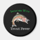 Perfect gift for the avid trout angler, fly fisherman or fly fisherwoman in your life with a full color and detailed image of a powerful leaping rainbow trout with the text Infected With Trout Fever.