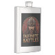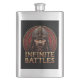 A bold and dynamic design featuring the text "Infinite Battles" in a traditional Viking colour palette of red and gold. The words are arranged in a powerful, angular style, reminiscent of ancient runes. The background is a textured, weathered surface, adding a sense of authenticity and historical significance.
