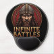 A bold and dynamic design featuring the text "Infinite Battles" in a traditional Viking colour palette of red and gold. The words are arranged in a powerful, angular style, reminiscent of ancient runes. The background is a textured, weathered surface, adding a sense of authenticity and historical significance.