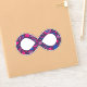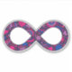 Show your dual pride! The infinity symbol represents all forms of neurodiversity, including autism and ADHD. This cheerful infinity symbol is filled with hearts, stars, rainbows, smiley faces, and polka dots, colored in the gender-neutral Bi (Bisexual and/or Biromantic) Pride flag's colors of bright magenta pink, violet purple, and royal blue. The glittery texture gives it that extra unique flare — just like you!