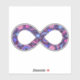 Show your dual pride! The infinity symbol represents all forms of neurodiversity, including autism and ADHD. This cheerful infinity symbol is filled with hearts, stars, rainbows, smiley faces, and polka dots, colored in the gender-neutral Omni Omnisexual Pride flag's colors — shades of pink, purple, blue, and periwinkle. The glittery texture gives it that extra unique flare — just like you!