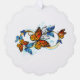 Symbol infinity made of gold, decorated with realistic orange and blue on a white background. Butterfly morpho and Monarch. Design with butterflies.