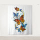 Symbol infinity made of gold, decorated with realistic orange and blue on a white background. Butterfly morpho and Monarch. Design with butterflies.