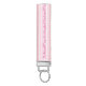 A pink striped key chain designed with continuous school psychologist lettering.