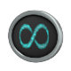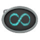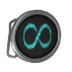 Oval belt buckle with an infinity symbol in black and blue.