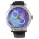 A cool and modern, trendy nebula design featuring a white symbol of the infinity .