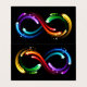Symbol of infinity is artistically painted with fast moving, bright, luminous, rainbow colored comets with long flexible tails on black background. Rainbow infinity.
