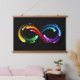 Symbol of infinity is artistically painted with fast moving, bright, luminous, rainbow colored comets with long flexible tails on black background. Rainbow infinity.