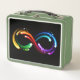 This is a standard metal lunchbox that appears to work just fine. We designed this box ourselves with an uploaded photo and custom text on the front and back. It looks absolutely beautiful except the front of the lunchbox is not centered like it shows in the photo. The print borders don't align with the inset flat part of the box where the preview photo online showed it perfectly centered in there. The back looks nice and centered though.