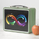 Symbol of infinity is artistically painted with fast moving, bright, luminous, rainbow colored comets with long flexible tails on black background. Rainbow infinity.