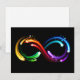 Symbol of infinity is artistically painted with fast moving, bright, luminous, rainbow colored comets with long flexible tails on black background. Rainbow infinity.