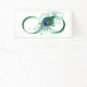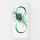 The symbol of infinity with a bright, green, artistic peacock feather on a white background. Tattoo style.