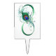The symbol of infinity with a bright, green, artistic peacock feather on a white background. Tattoo style.
