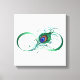 The symbol of infinity with a bright, green, artistic peacock feather on a white background. Tattoo style.