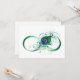 The symbol of infinity with a bright, green, artistic peacock feather on a white background. Tattoo style.