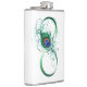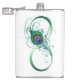 The symbol of infinity with a bright, green, artistic peacock feather on a white background. Tattoo style.