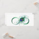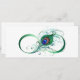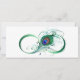 The symbol of infinity with a bright, green, artistic peacock feather on a white background. Tattoo style.