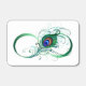 The symbol of infinity with a bright, green, artistic peacock feather on a white background. Tattoo style.