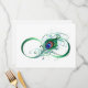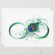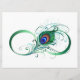 The symbol of infinity with a bright, green, artistic peacock feather on a white background. Tattoo style.