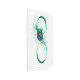 The symbol of infinity with a bright, green, artistic peacock feather on a white background. Tattoo style.