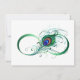 The symbol of infinity with a bright, green, artistic peacock feather on a white background. Tattoo style.
