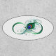 The symbol of infinity with a bright, green, artistic peacock feather on a white background. Tattoo style.
