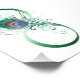 The symbol of infinity with a bright, green, artistic peacock feather on a white background. Tattoo style.