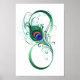The symbol of infinity with a bright, green, artistic peacock feather on a white background. Tattoo style.