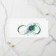 The symbol of infinity with a bright, green, artistic peacock feather on a white background. Tattoo style.