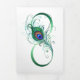 The symbol of infinity with a bright, green, artistic peacock feather on a white background. Tattoo style.