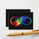 Artistically drawn infinity symbol with beautiful rainbow feather on white background. Tattoo style.