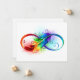 Artistically drawn infinity symbol with beautiful rainbow feather on white background. Tattoo style.