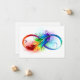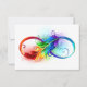 Artistically drawn infinity symbol with beautiful rainbow feather on white background. Tattoo style.