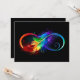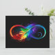 Artistically drawn infinity symbol with beautiful rainbow feather on white background. Tattoo style.