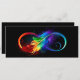 Artistically drawn infinity symbol with beautiful rainbow feather on white background. Tattoo style.