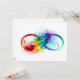 Artistically drawn infinity symbol with beautiful rainbow feather on white background. Tattoo style.