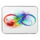 Artistically drawn infinity symbol with beautiful rainbow feather on white background. Tattoo style.