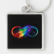 Artistically drawn infinity symbol with beautiful rainbow feather on white background. Tattoo style.