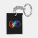 Artistically drawn infinity symbol with beautiful rainbow feather on white background. Tattoo style.