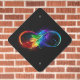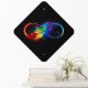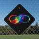 Artistically drawn infinity symbol with beautiful rainbow feather on white background. Tattoo style.