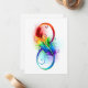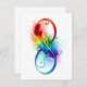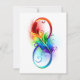 Artistically drawn infinity symbol with beautiful rainbow feather on white background. Tattoo style.