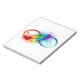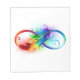 Artistically drawn infinity symbol with beautiful rainbow feather on white background. Tattoo style.