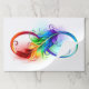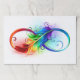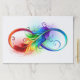 Artistically drawn infinity symbol with beautiful rainbow feather on white background. Tattoo style.