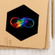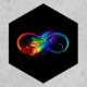 Artistically drawn infinity symbol with beautiful rainbow feather on white background. Tattoo style.