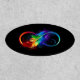 Artistically drawn infinity symbol with beautiful rainbow feather on white background. Tattoo style.