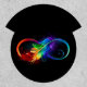 Artistically drawn infinity symbol with beautiful rainbow feather on white background. Tattoo style.